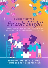 Round up your friends and head to the winery for a night of fun! Race to be the first team to complete the puzzle and take home bragging rights—plus a prize to celebrate your victory.